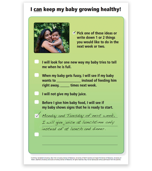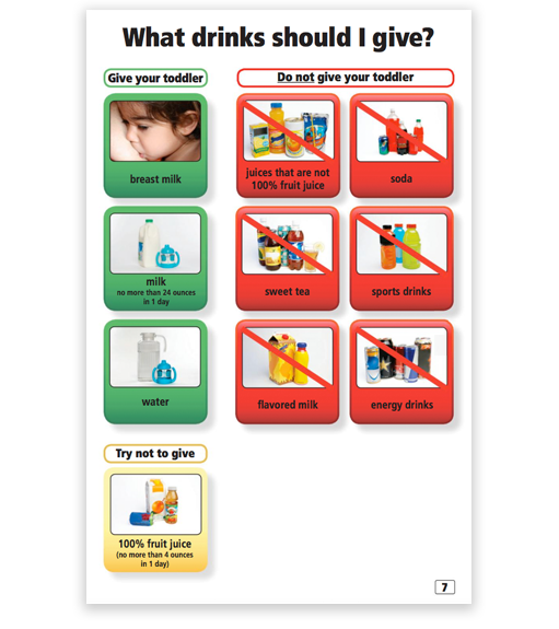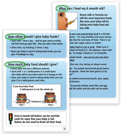 We limited the scope to 3 key messages. These messages are shown on the cover of each of the booklets. Providers are asked to try to cover the 2 messages that the parent is most interested in.